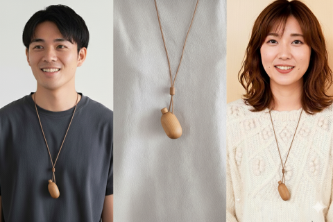 どんぐりをイメージしたシンプルなデザインに本物の木の肌触り。フタをすれば香りが出すぎず、周りに迷惑にならない、自分だけが楽しめる仕組みになっております。場所を選ばずリフレッシュしたい時に自分の首周りで、ほのかに香るのでとても使いやすいです。